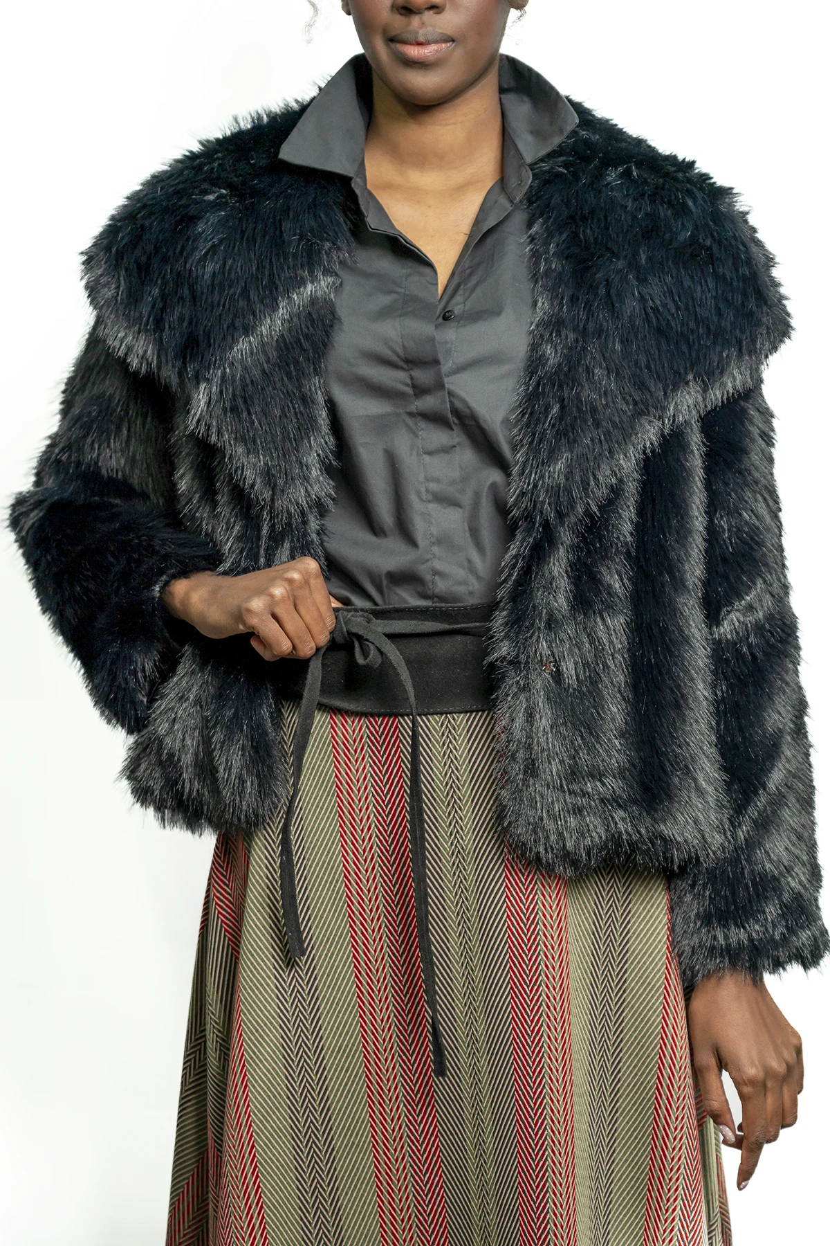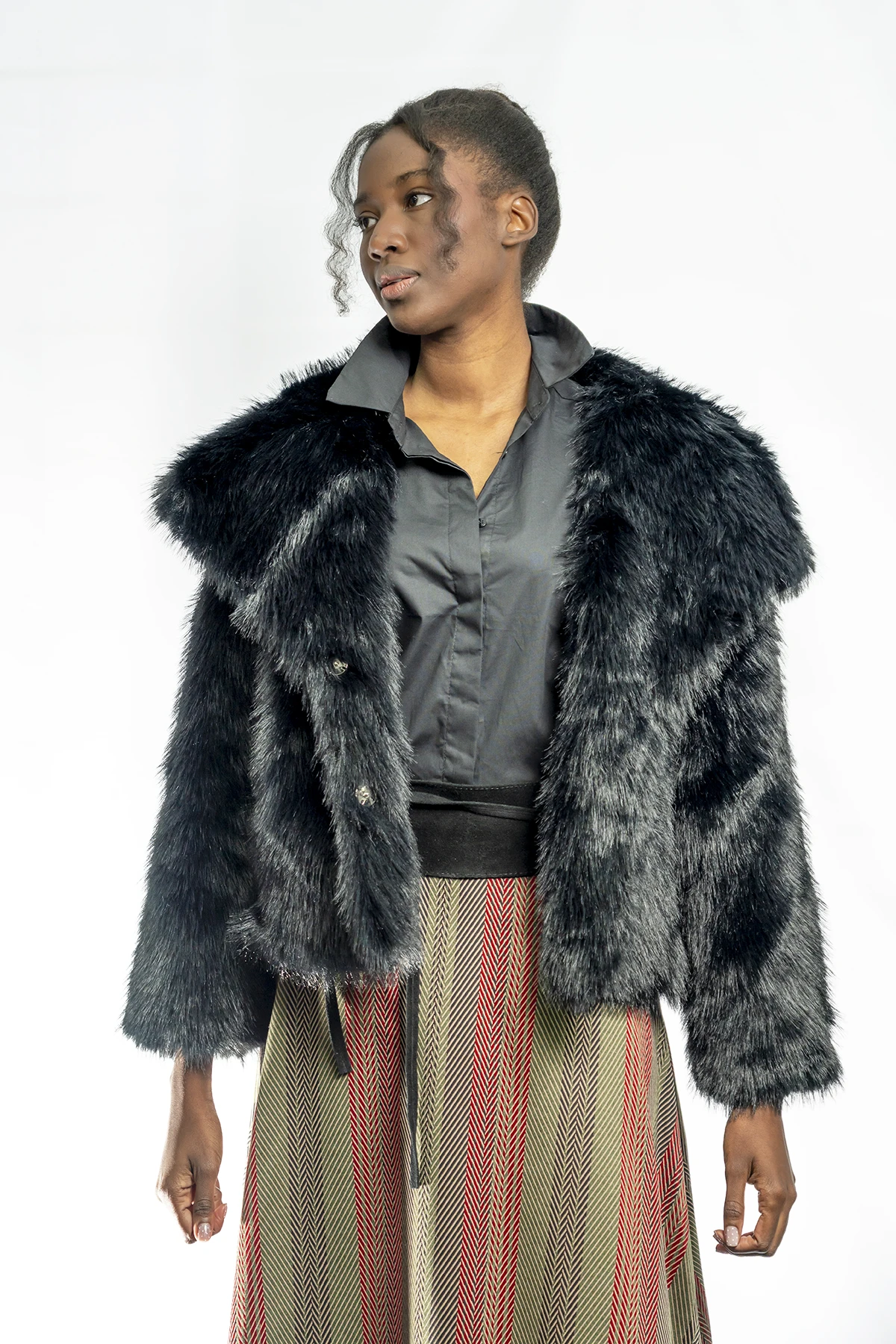 Eleva tu estilo invernal y glam con la chaqueta «Night Onyx», una pieza de pelo sintético ultra suave con cuello XL que combina el lujo clásico con un diseño contemporáneo de alto impacto.